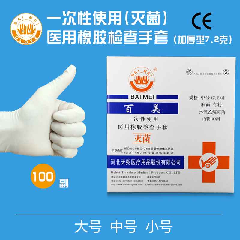 百美一次性使用醫(yī)用橡膠檢查手套 100雙裝